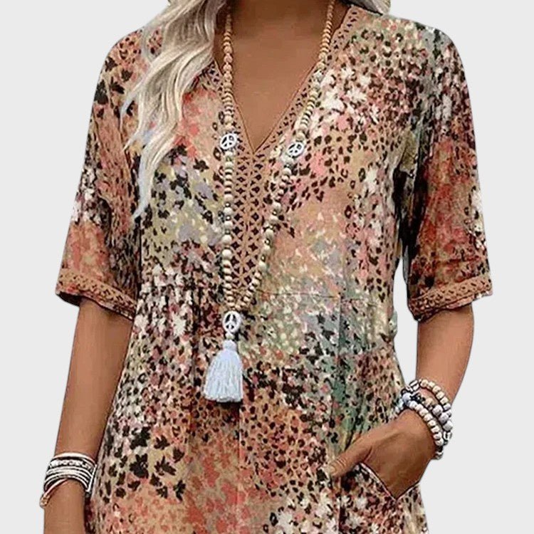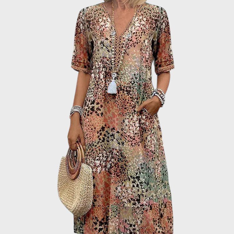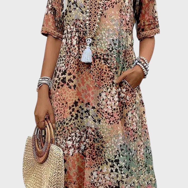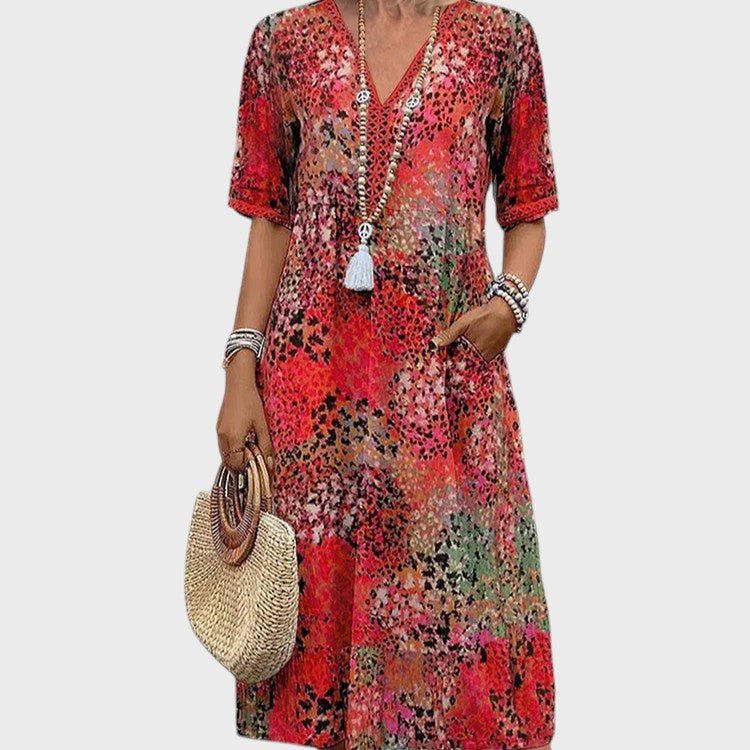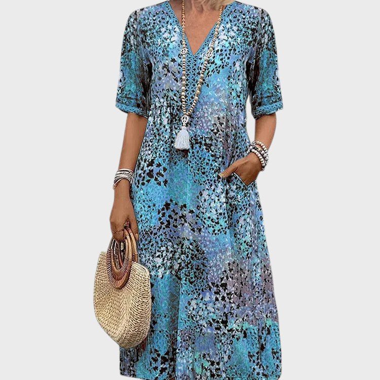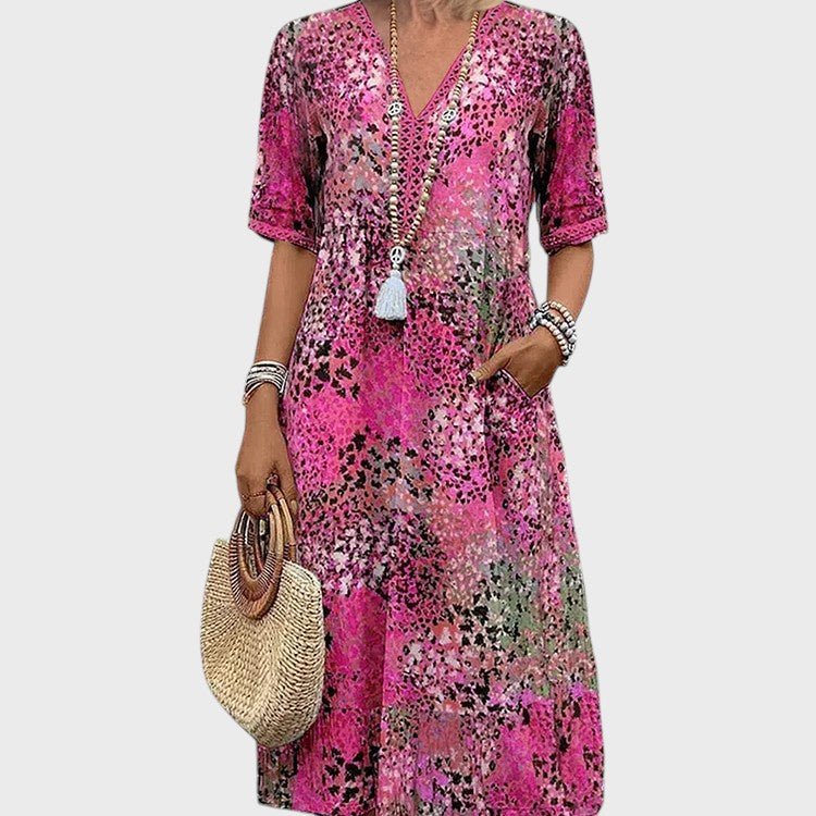 Otkrij profinjenost s haljinom Mira, dizajniranom da ponudi savršenu kombinaciju udobnosti i stila. Sa svojim laskavim V-izrezom i laganom tkaninom, ova se haljina prilagođava tvojim svakodnevnim potrebama, bilo da je riječ o brunchu, neformalnom susretu ili vikend bijegu. Savršena za tople i sunčane dane, haljina Dalia nezaobilazan je komad koji jamči eleganciju bez napora.
