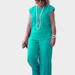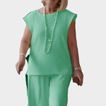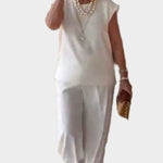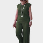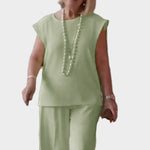 - Široke hlače i bezrukavni top — sloboda pokreta i ugodno pristajanje tijekom cijelog dana.