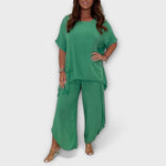 Odaberite lakoću i sofisticiranost s ovim setom od bež lana. S ležernim krojem, prozračnom tkaninom i besprijekornim padom, idealan je izbor za žene koje prioritet daju udobnosti bez kompromisa u stilu. Savršeno za toplije dane, izlete ili ležerni-chic izgled za vikend.