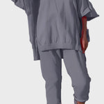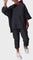 Opušten set koji spaja praktičnost i moderan izraz. Bluza širokog kroja s okruglim izrezom i 3/4 rukavima lijepo pada, dok hlače s porubom nude svakodnevnu udobnost i lakoću kretanja. Monokrom paleta olakšava kombiniranje za dom, grad i ležerne izlaske.