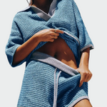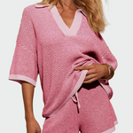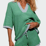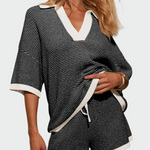 Pleteni set koji spaja ležeran stil i praktičnost. Mekana tekstura ugodna je na koži, a elastično pristajanje osigurava lakoću kretanja i uredan pad. Moderan dizajn čini ga idealnim za opuštene, ali i profinjene kombinacije kroz cijeli dan.