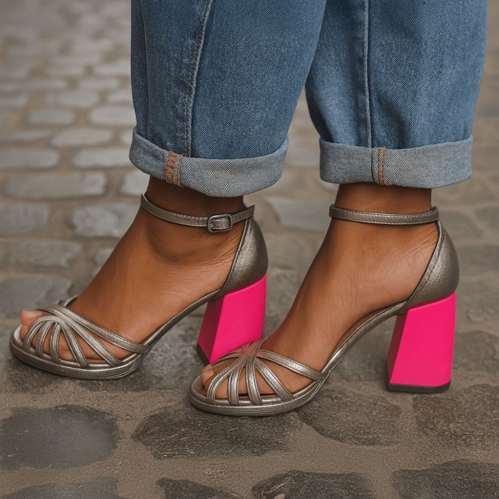 Ustira spaja čvrstoću svoje široke pete s modernim i ženstvenim linijama, nudeći obuću koja se ističe bez odricanja od udobnosti. Podesivi remen oko gležnja naglašava siluetu i osigurava savršeno prianjanje, tako da svaki tvoj korak postaje izjava stila i samopouzdanja.