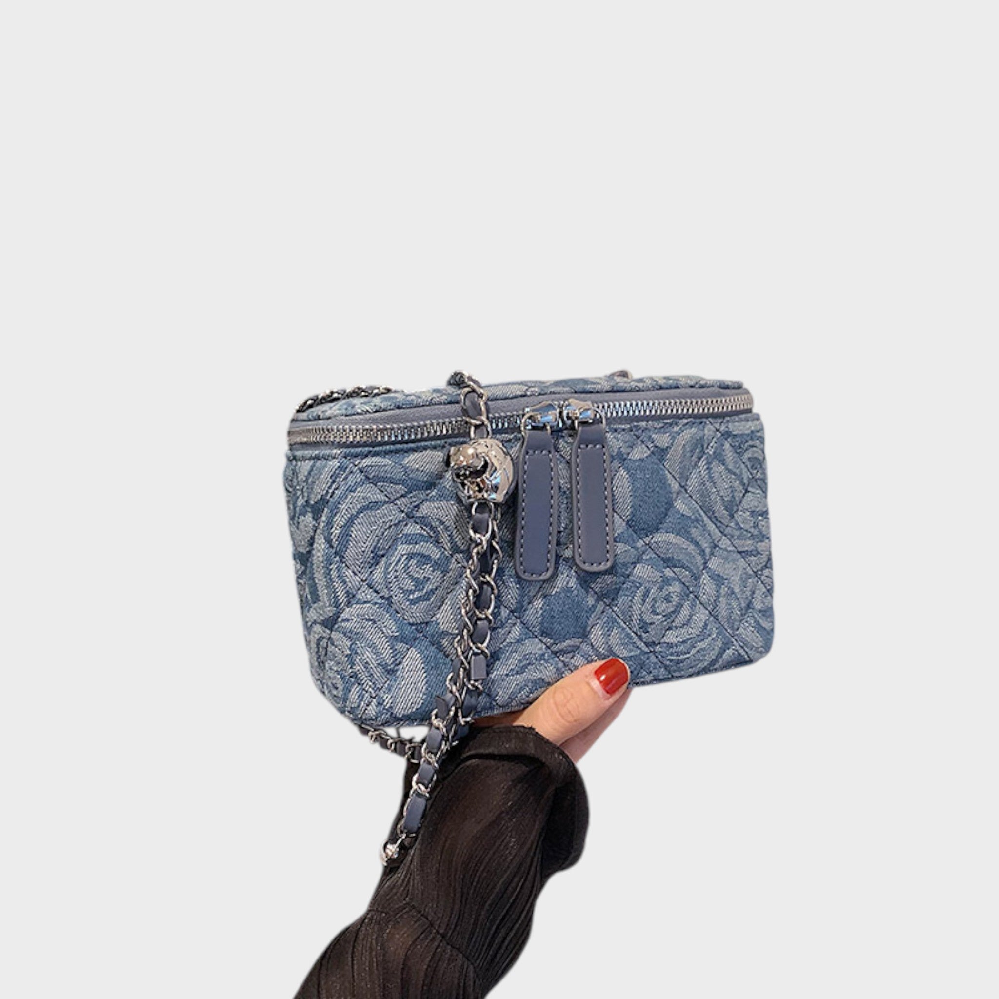 Ova torba je savršen izbor za one koji vole stil s romantičnim dodirom. S reljefnim cvjetnim uzorkom i sofisticiranim tekstilnim završetkom, donosi lagani, kreativni i ženski izgled. Njezin strukturirani oblik i ručka s lancem donose ravnotežu između ležernog i elegantnog, čineći je jedinstvenim komadom koji ističe vašu osobnost u svakoj prilici.