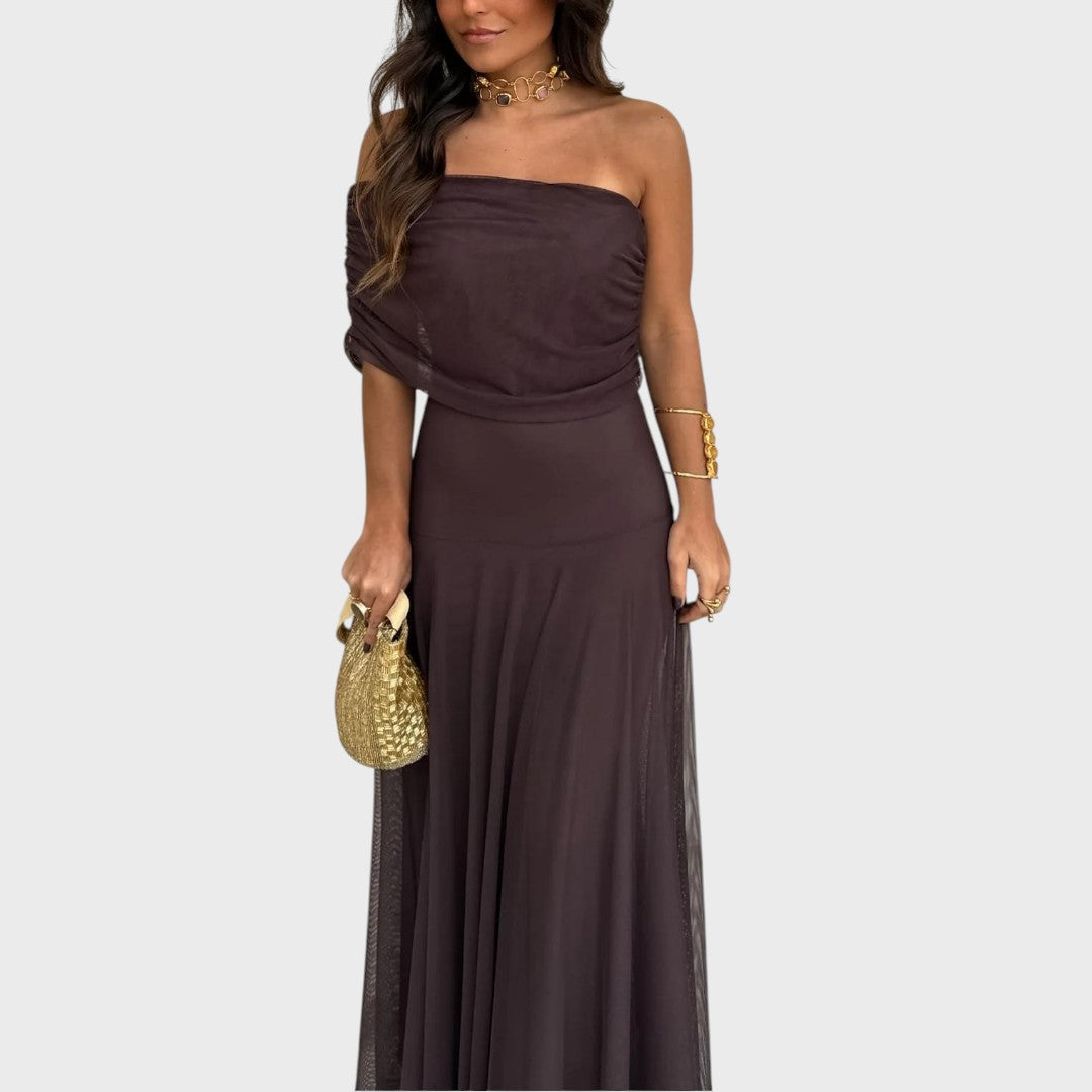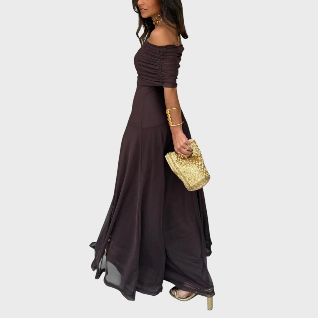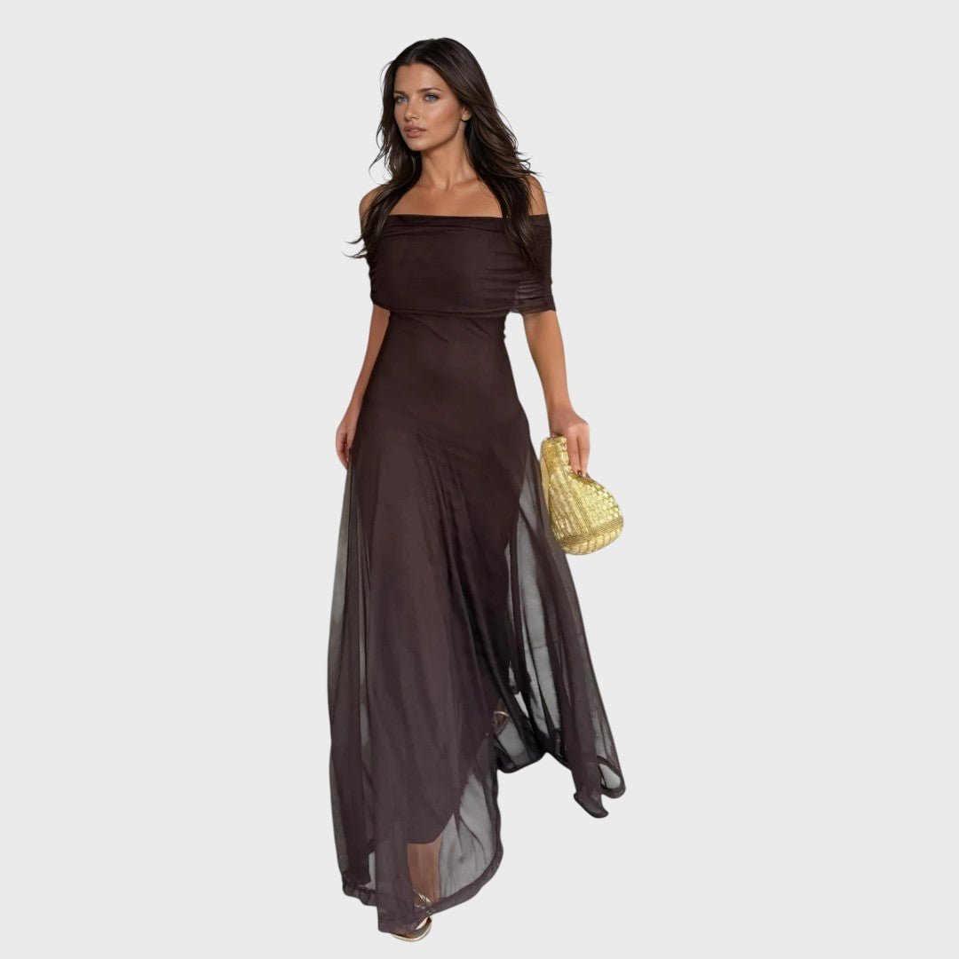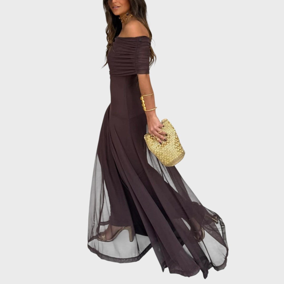 Zorica | Haljina od šifona s otkrivenim ramenima, maksi kroja